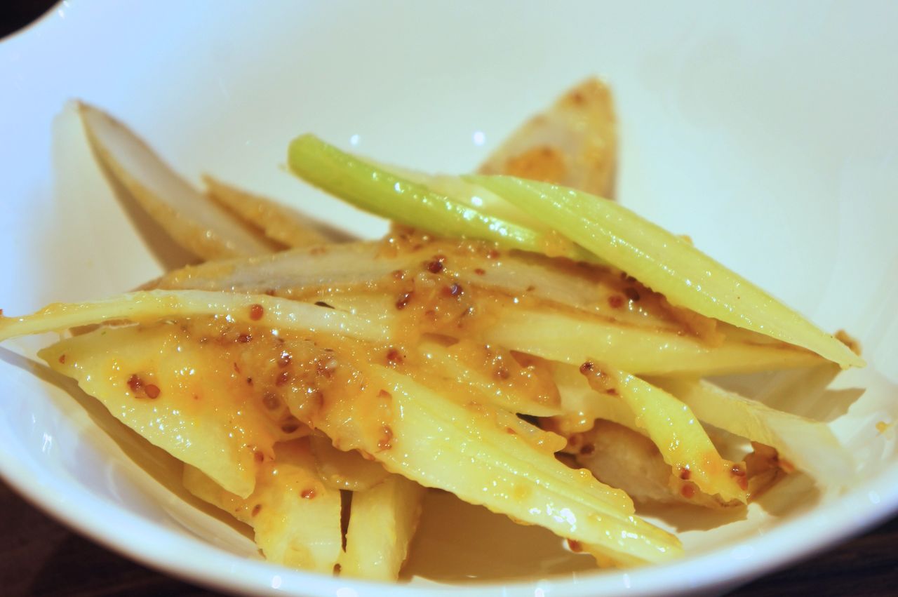 ゆずマスタードソースとセロリ・スナップエンドウのシャキシャキ感の組み合わせが絶妙。